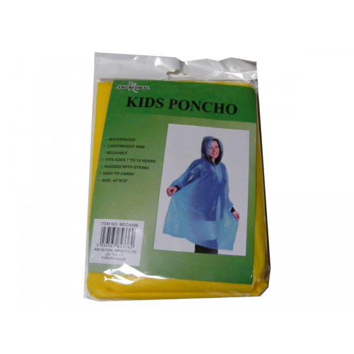 Childrens Plastic Poncho with Hood - One Size Upto 12 Years - Choice of 6 Colours